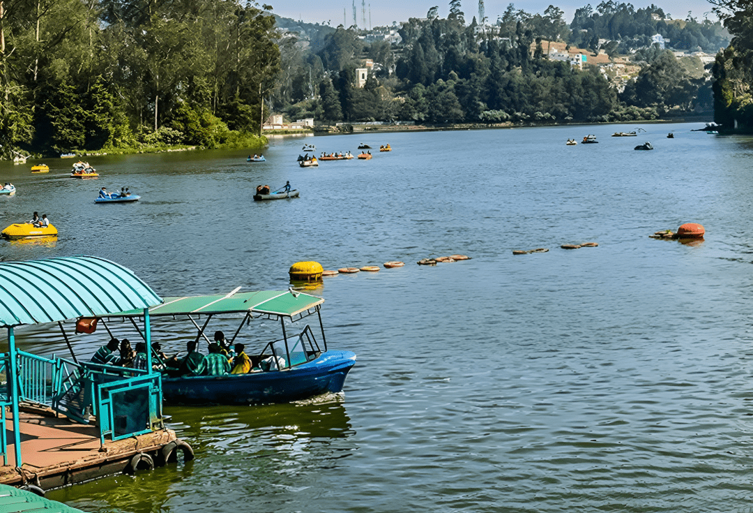 The Ooty Boat House is the main tourist attraction on the artificial Ooty Lake, offering visitors scenic rides on pedal, row, and motorboats managed by the Tamil Nadu Tourism Development Corporation.